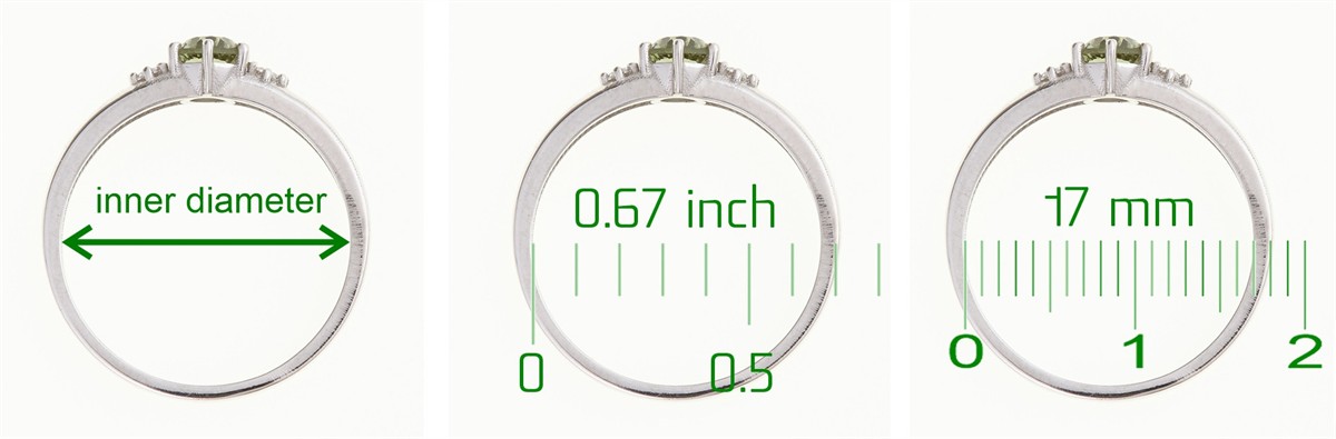 Measuring the inner diameter of a ring (either in mm or inch):
